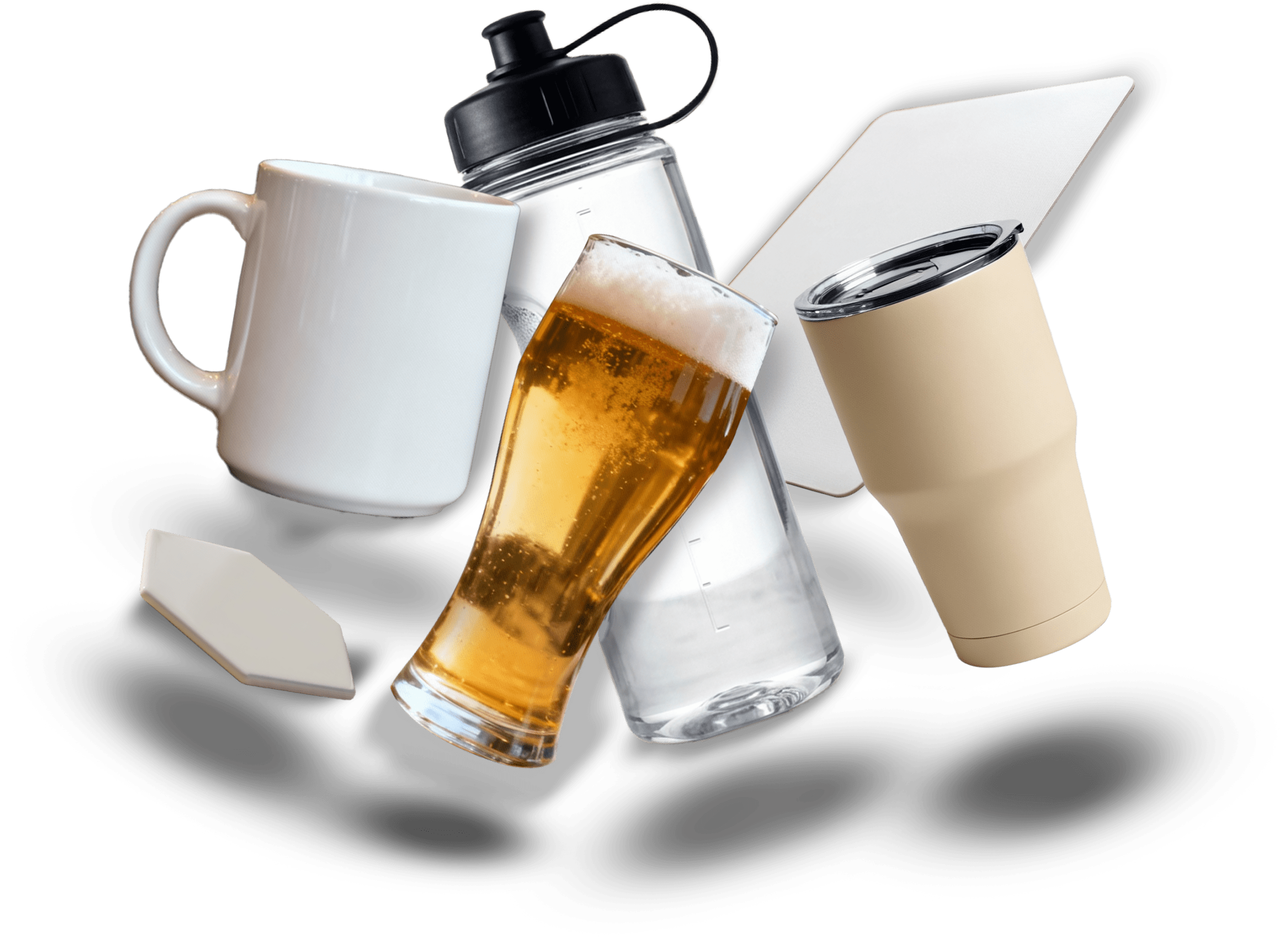 Create clean, realistic base images for drinkware and tableware. Coffee mugs, tumblers, beer glasses, water bottles, coasters, and table mats—all ready for effortless customization.
